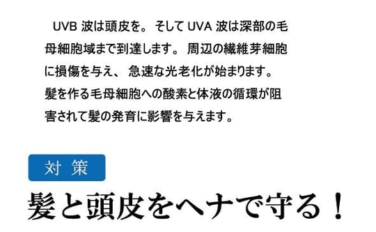 髪たんぱく質に吸着する特性のヘナ成分(ローソン)が吸着することによって毛髪を染めます。色を選ぶことはできません。髪のコンディションにより発色、効果の期間が異なります。傷んだ髪ほど良く染まりやすいです。色素が次第に流出するため、色持ちも短いです。髪、カラダへのダメージはありません。
